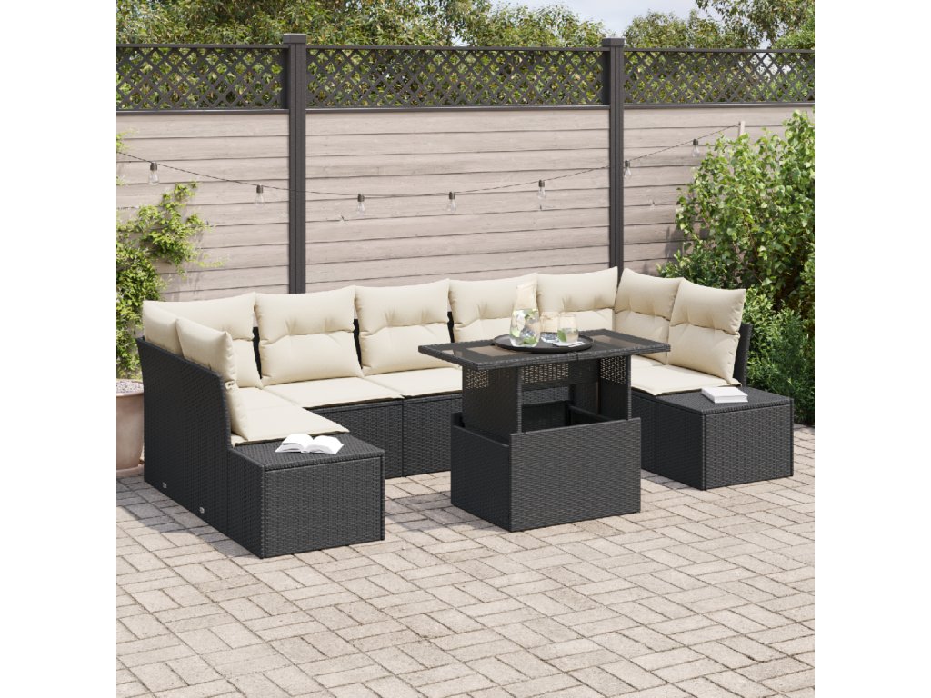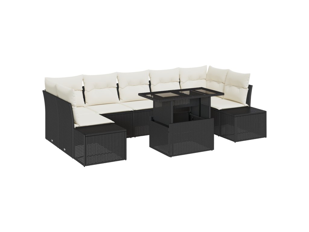 Set pohovek s polštářem 8 pcs Černá a krémová polyratan