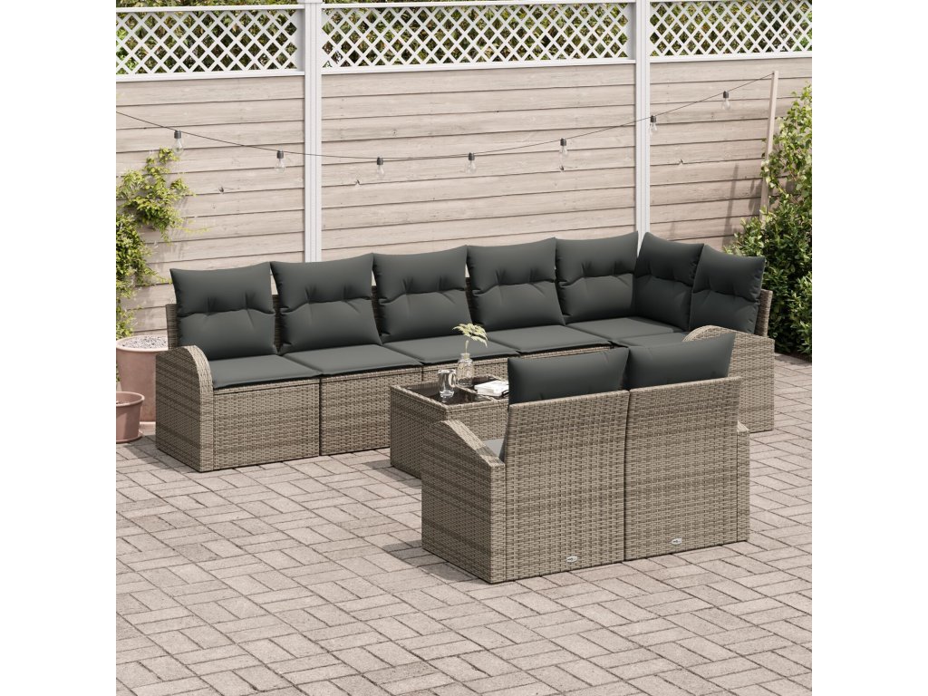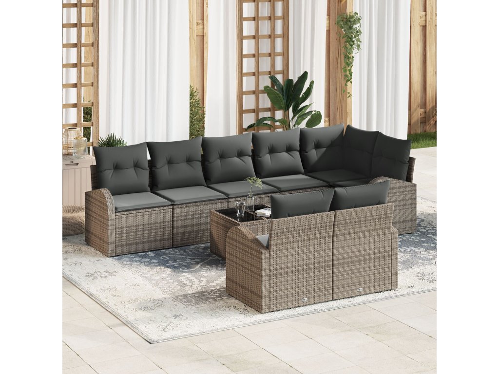 Tato moderní zahradní pohovková sada je skvělým doplňkem jakéhokoli venkovního prostoru, navržená s důrazem na jednoduchost a funkčnost. S čistými liniemi a minimálním zdobením se hodí k různým zahradním a terasovým stylům. Pohovka z polyratanu vypadá skvostně a poskytuje komfortní sezení, ideální jak na relaxaci, tak na příjemné setkání.