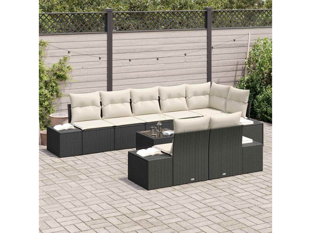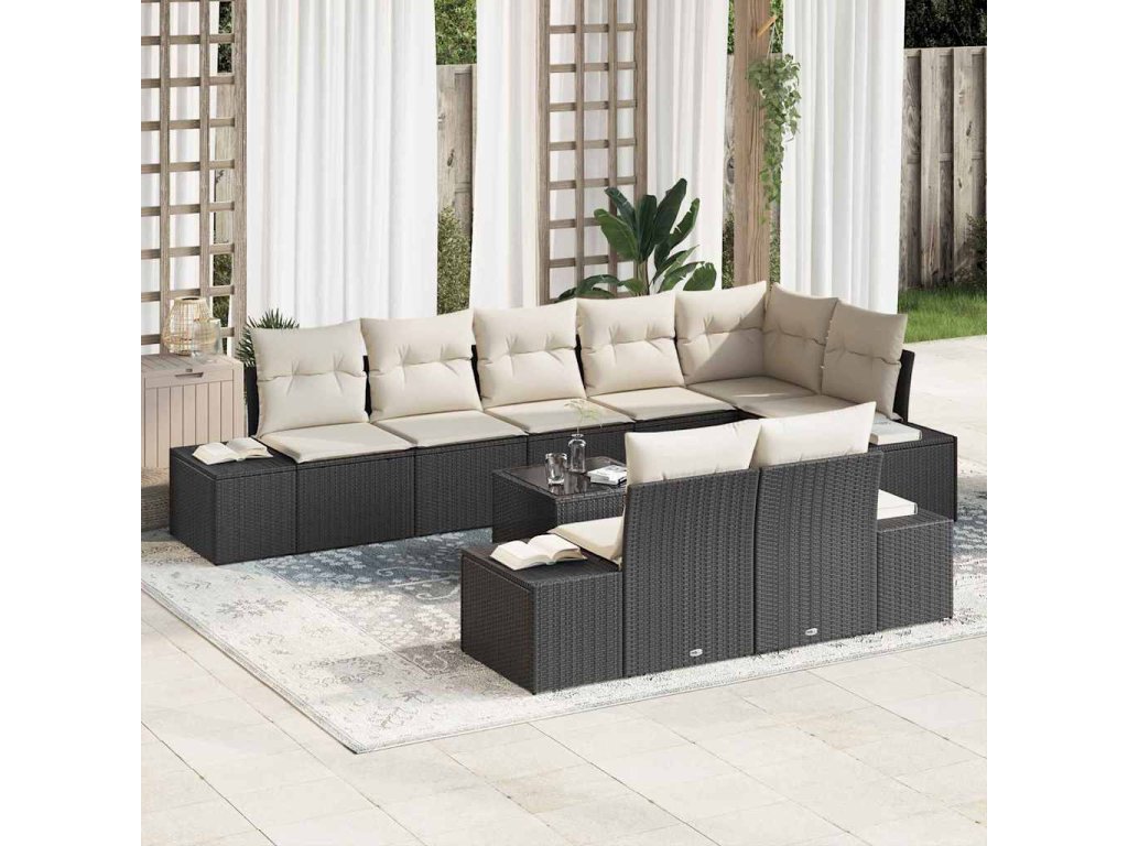 Sada zahradních pohovek 9 pcs Černá a krémová polyratan