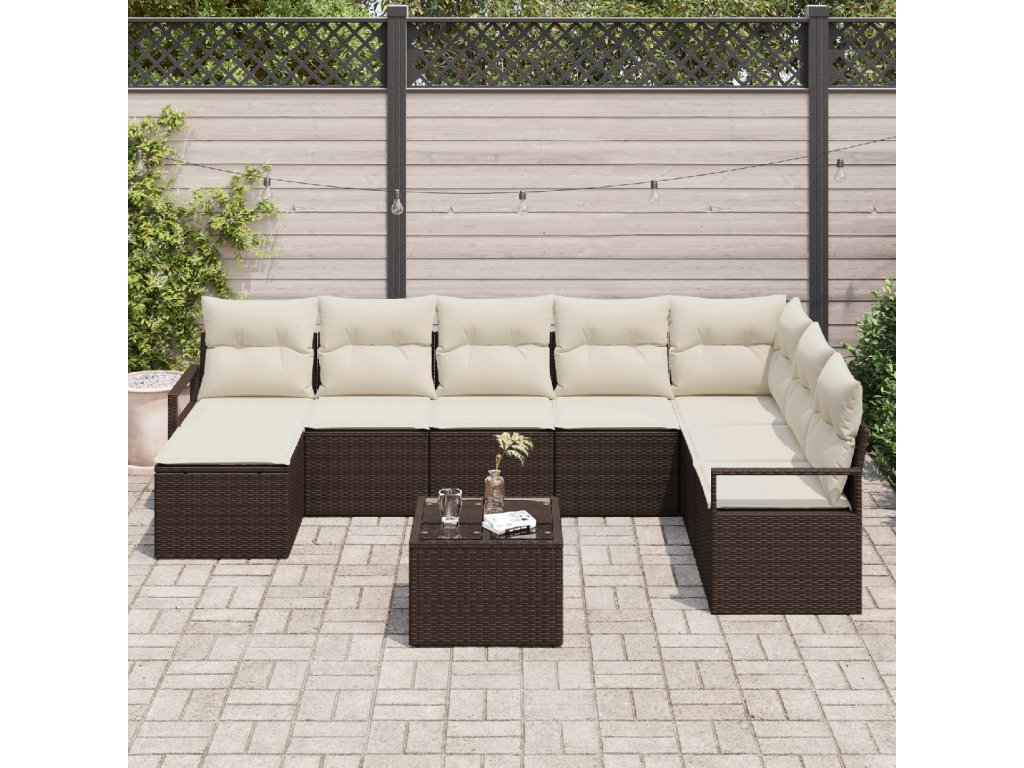 Set pohovek s polštářem 9 pcs Hnědá a krémová polyratan