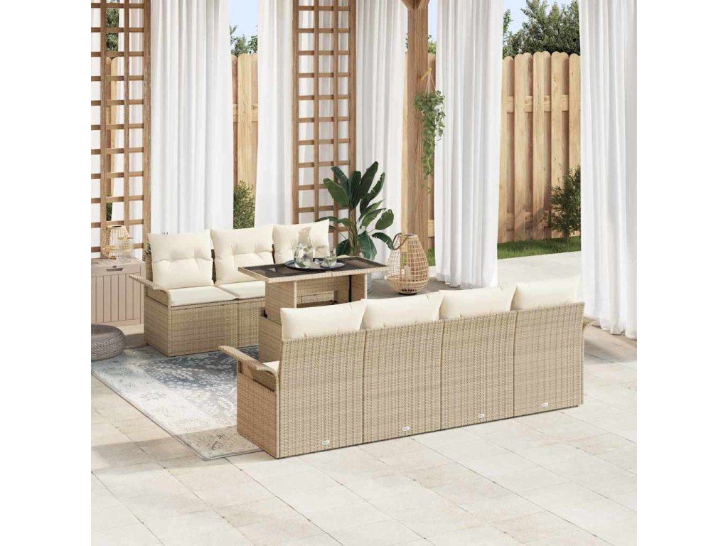 Sada zahradních pohovek s polštářem 8 pcs Béžová Poly Ratan