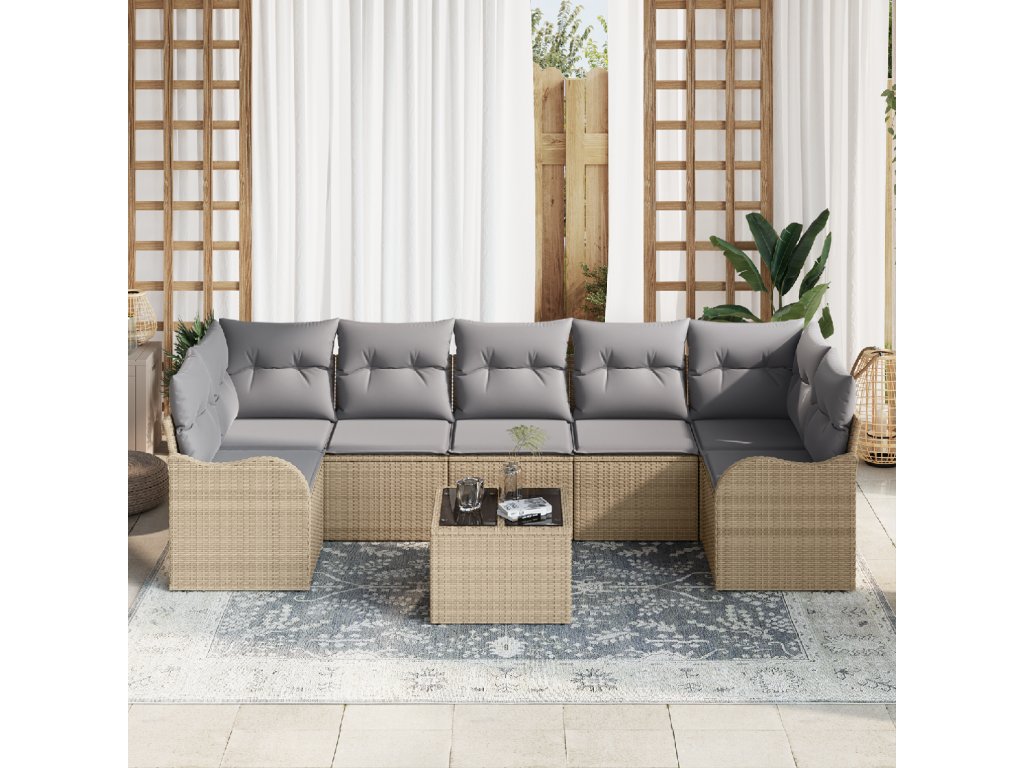 Materiály: Tato zahradní sedací souprava je vyrobená z kvalitního poly ratanu, který nabízí odolnost a elegantní vzhled. Práškově lakovaný ocelový rám zajišťuje stabilitu a odolnost vůči počasí, takže si zachovává stylovou estetiku. Součásti: Souprava obsahuje univerzální rohové a středové sedačky, každá pečlivě navržena pro pohodlí a styl. Prostorné arm sofasy a elegantní skleněný stůl se skvěle doplňují a umožňují různé sezení pro setkávání, odpočinek nebo jídlo. Vlastnosti / Funkce / Design: Modulární design soupravy umožňuje nekonečné možnosti přizpůsobení pro jakékoli venkovní prostředí. UV odolné materiály chrání před slunečním poškozením a zachovávají vizuální přitažlivost. Lehké provedení usnadňuje přesun pro intimní setkání nebo větší akce. Doporučené použití: Ideální pro letní setkání, souprava se hodí do různých zahradních a terasových prostorů. Ať už děláte rodinný gril nebo si užíváte klidnou chvilku s knihou, její styl povzbudí relaxaci a společenskou interakci. Je perfektní jak pro neformální setkání, tak živé zahradní párty. Údržba: Pro dlouhou životnost se doporučuje pravidelně otírat vlhkým hadříkem. V případě špatného počasí používejte ochranný potah, aby souprava zůstala v bezvadném stavu po celou sezónu. Odnímatelné a pratelné potahy na polštáře navíc usnadňují údržbu, takže souprava vypadá stále jako nová.- Barva: Béžová