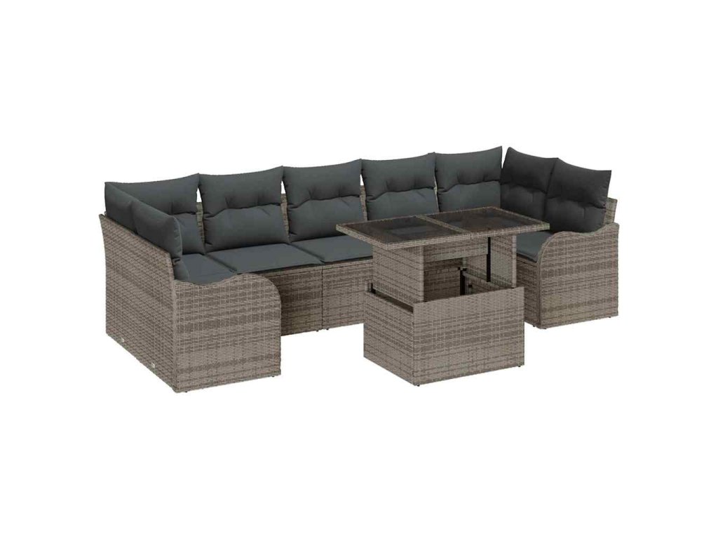 Sada zahradních pohovek s polštářem 8 pcs Šedá Poly ratan