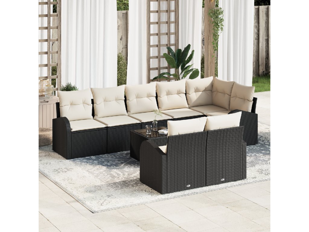 Set pohovek s polštářem 9 pcs Černá a bílá polyratan