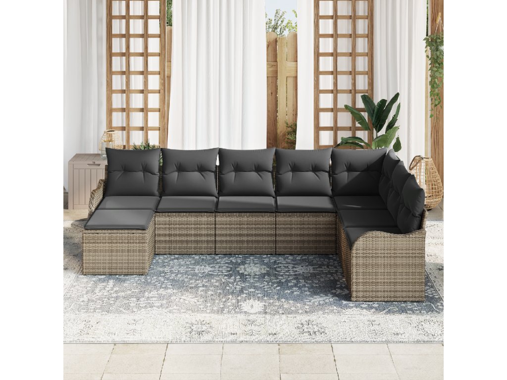 Sada zahradních pohovek s polštářem 8 pcs Šedá Poly ratan
