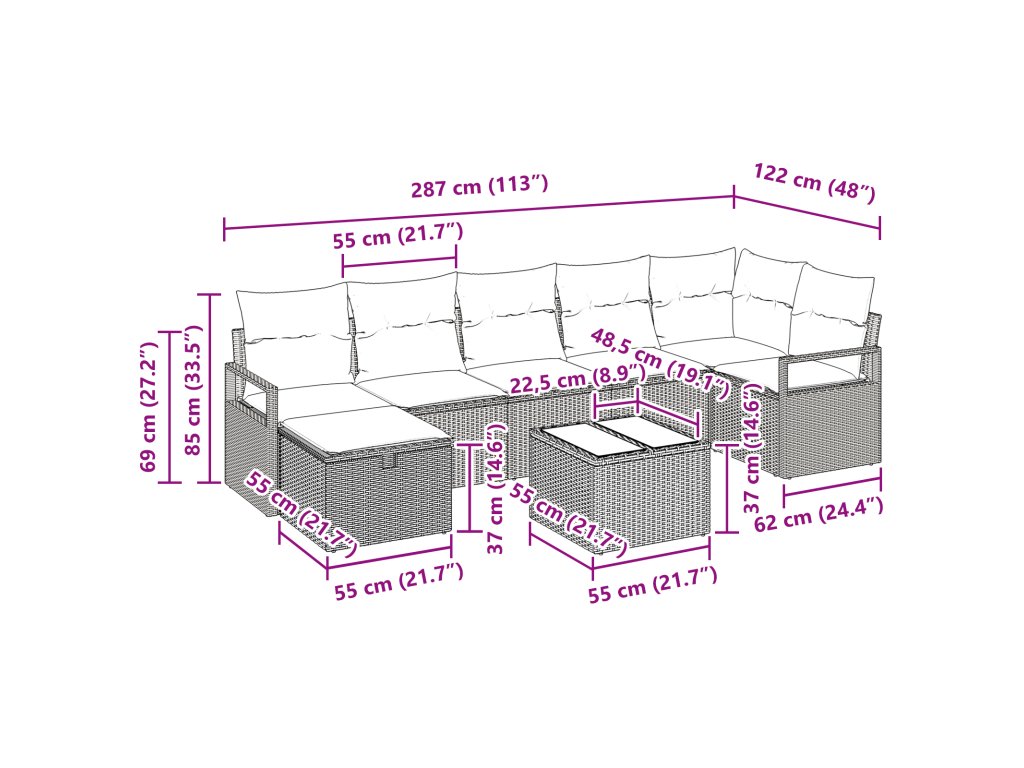 Tato skvělá zahradní sedací souprava skvěle kombinuje formu a funkci s moderním designem, což z ní dělá ideální volbu pro venkovní život. Její jasné linie a minimalistický styl ji dělají věrnou moderní estetice. Perfektní na terasy a zahrady, její robustní vzhled spolu s elegantním povrchem dodává atraktivitu a komfort, zatímco struktura umožňuje snadné uspořádání venkovního prostoru.