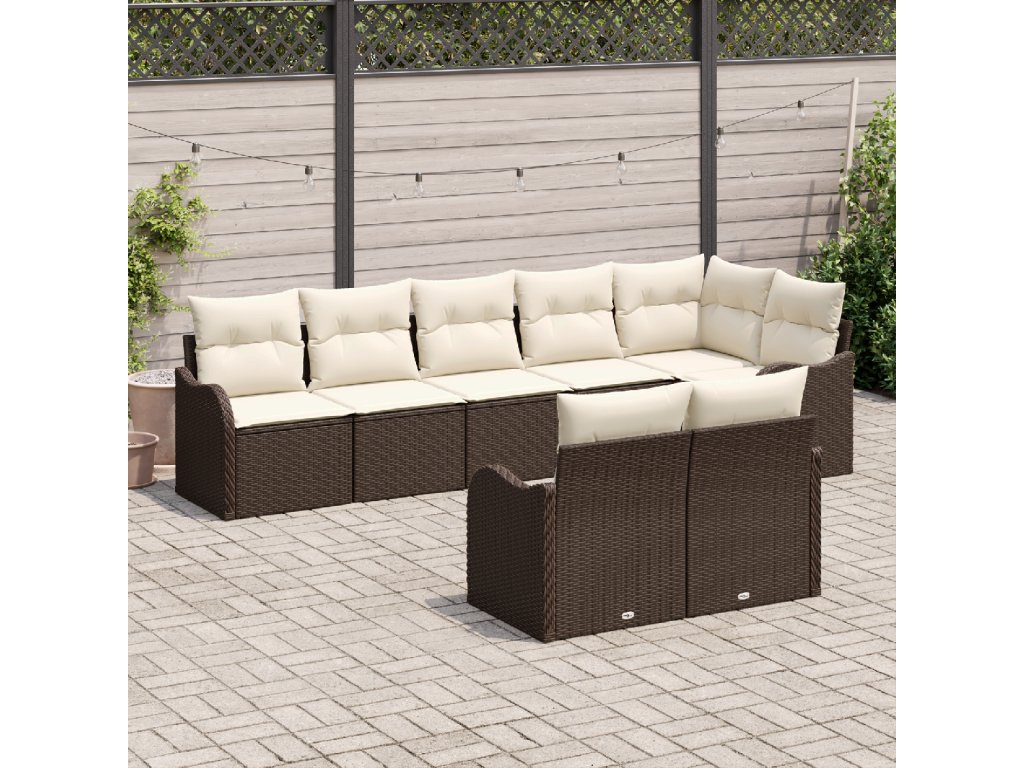 Sada zahradních pohovek 8 pcs Hnědá a bílá Poly ratan