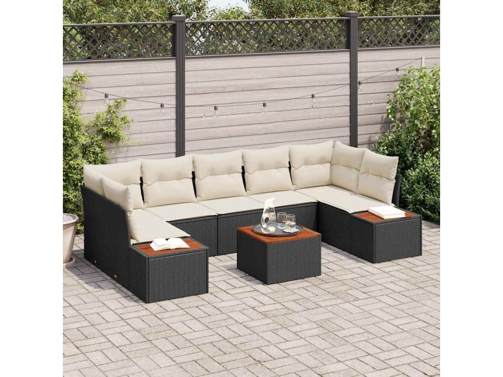 Sada zahradních pohovek s polštářem 8 pcs Černá Poly ratan