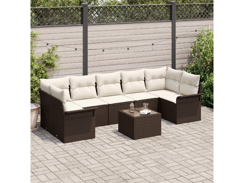 Sada zahradních pohovek 8 pcs Hnědá a krémová polyratan