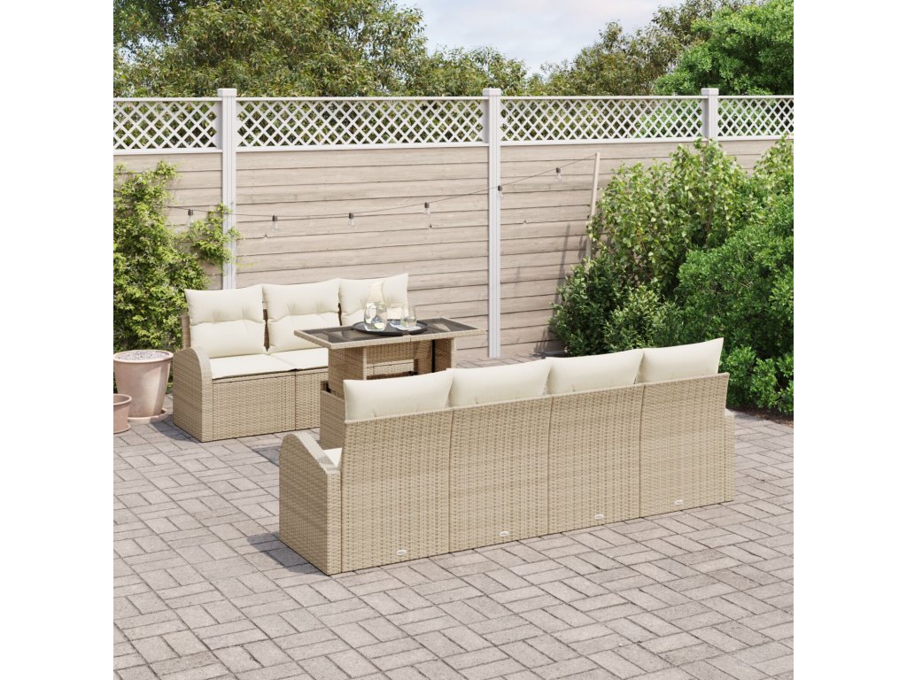 Sada zahradních pohovek s polštářem 8 pcs Béžová Poly ratan