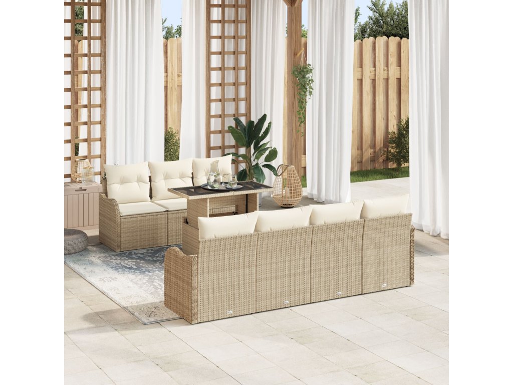 Sada zahradních pohovek s polštářem 8 pcs Béžová Poly ratan