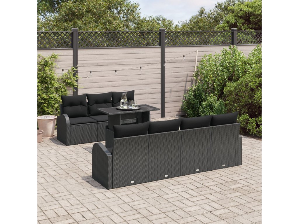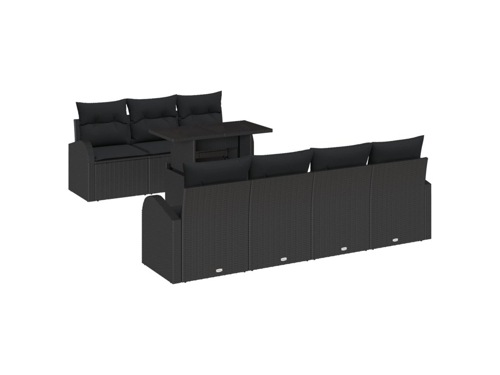 Sada zahradních pohovek s polštářem 8 pcs Černá Poly ratan
