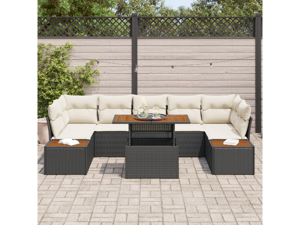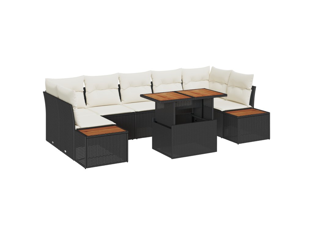 Zahradní jídelní souprava s polštářem 8 pcs Černá a béžová