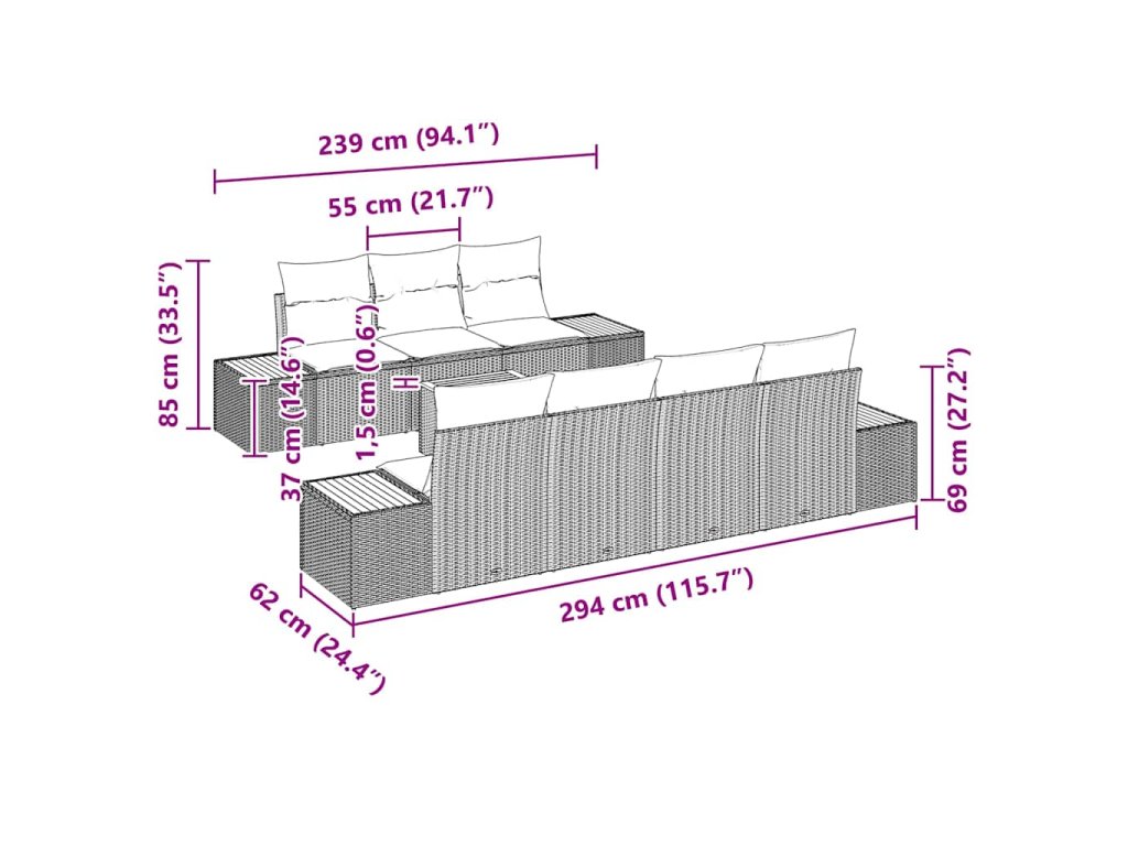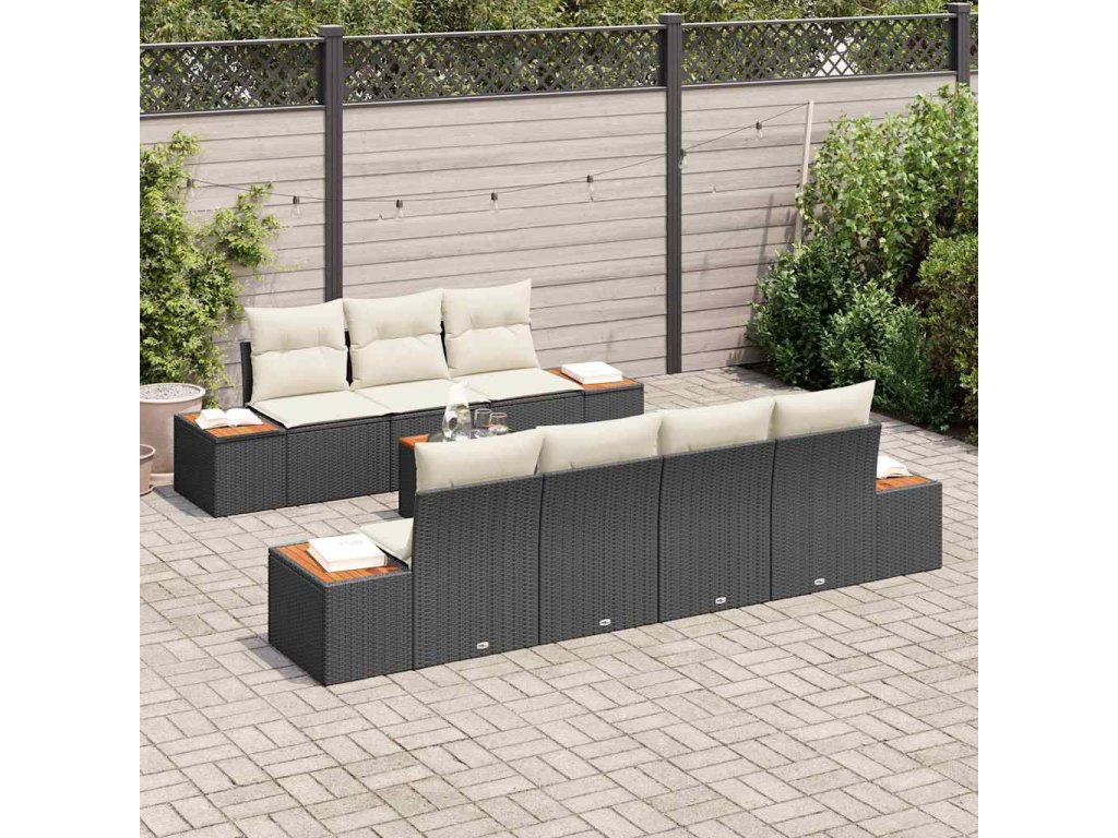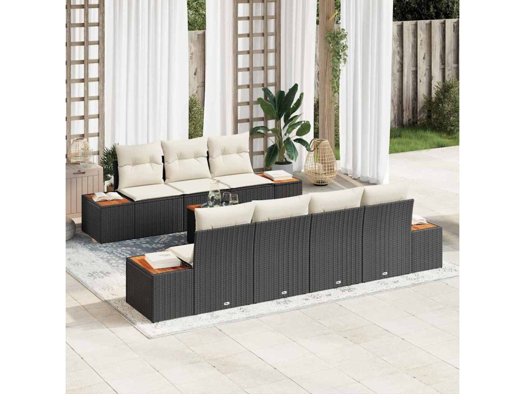 Sada zahradních pohovek s polštářem 8 pcs Černá Poly ratan