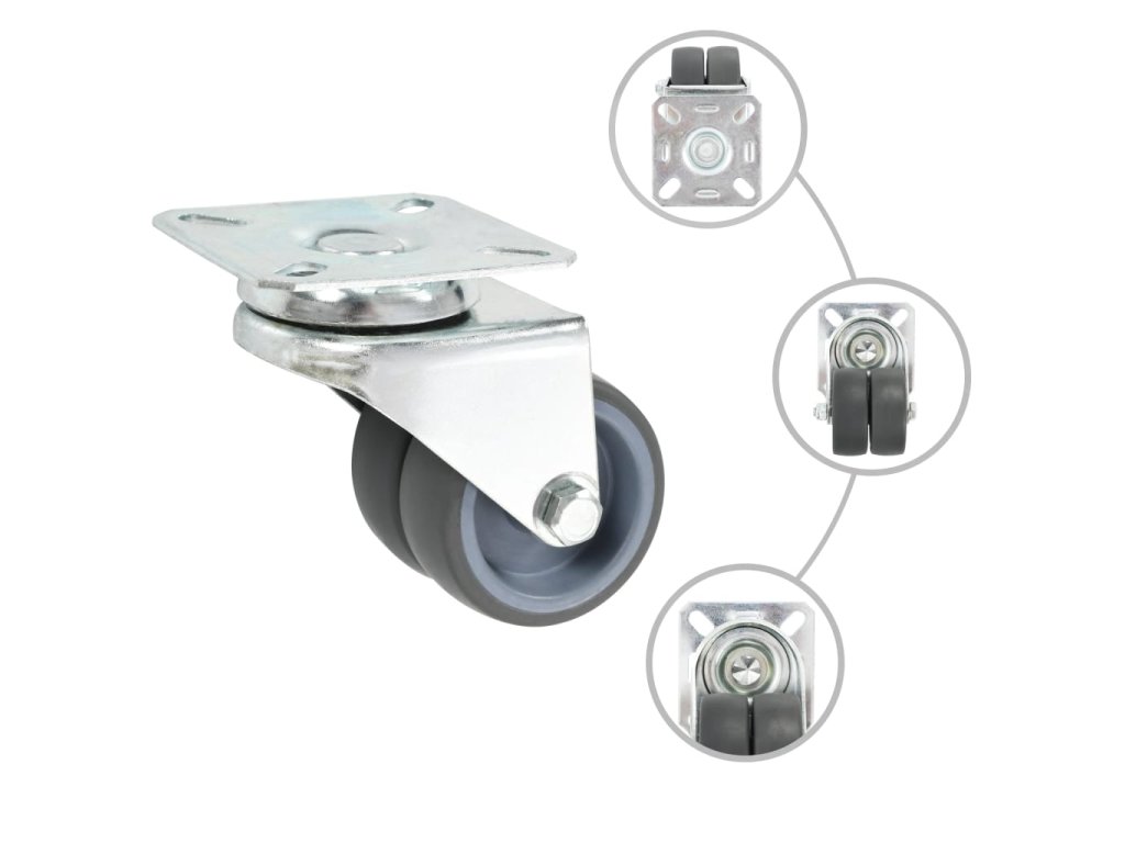 Tato sada 8 dvojitých otočných koleček je skvělým doplňkem k menšímu vybavení a nábytku, jako jsou pracovní stoly, vozíky, konferenční stolky, stojany na květináče, knihovny, nákupní vozíky apod.
