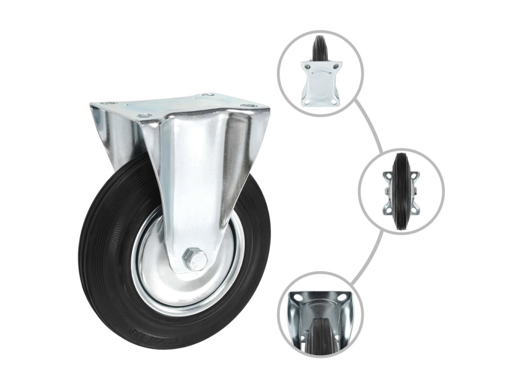 Kolečka jsou vyrobena z gumy, která je známá pro svou schopnost pohlcovat nárazy a vibrace. Ať už tedy kolečka namontujete na cokoliv, budete to moci přesouvat hladce a v tichosti. Jejich hladký povrch navíc ochrání vaši podlahu před poškrábáním. Zinkem potažený ocelový rám je odolný proti rzi, dodává kolečkům na odolnosti a prodlužuje jejich životnost. Každé kolečko má maximální nosnost až 180 kg.