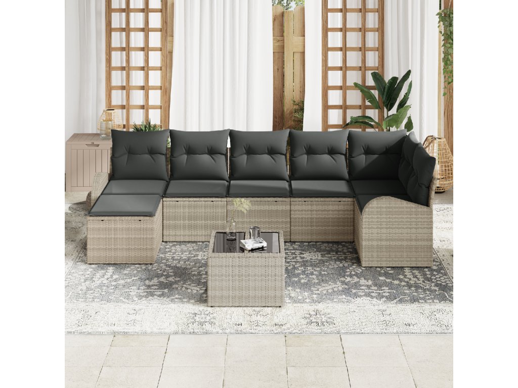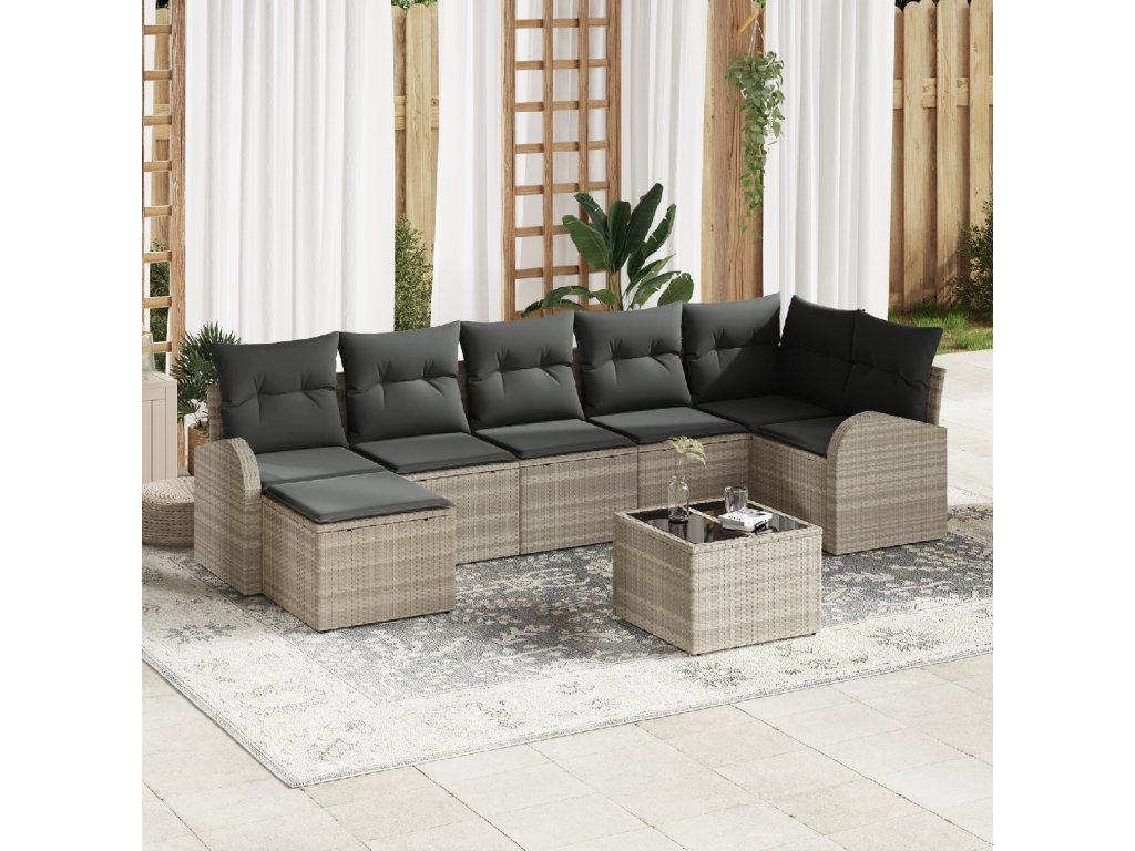 Sada zahradních pohovek 8 pcs Světle šedá Poly ratan