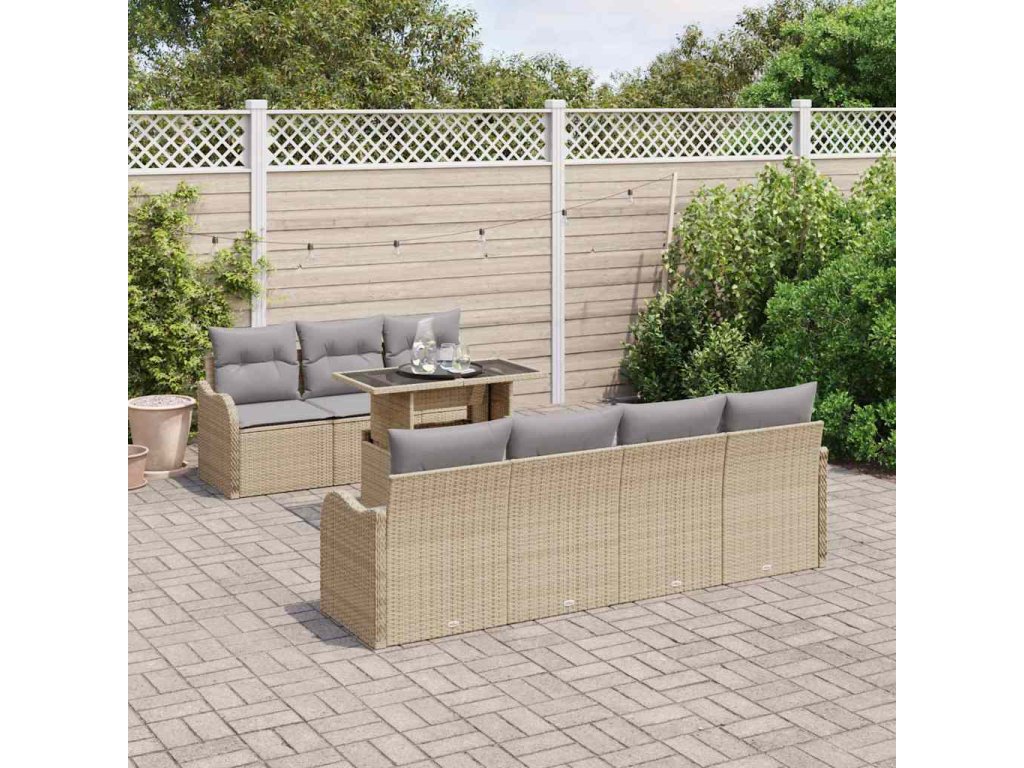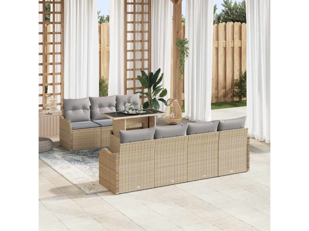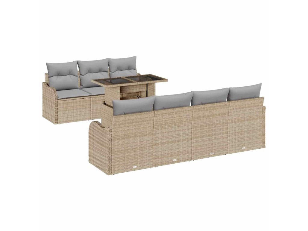 Sada zahradních pohovek s polštářem 8 pcs Béžová Poly Ratan