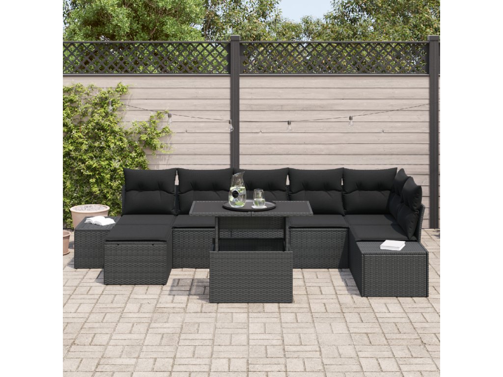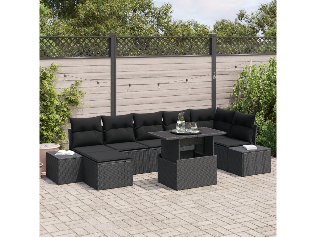 Sada zahradních pohovek s polštářem 8 pcs Černá
