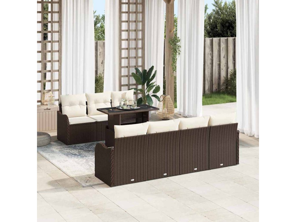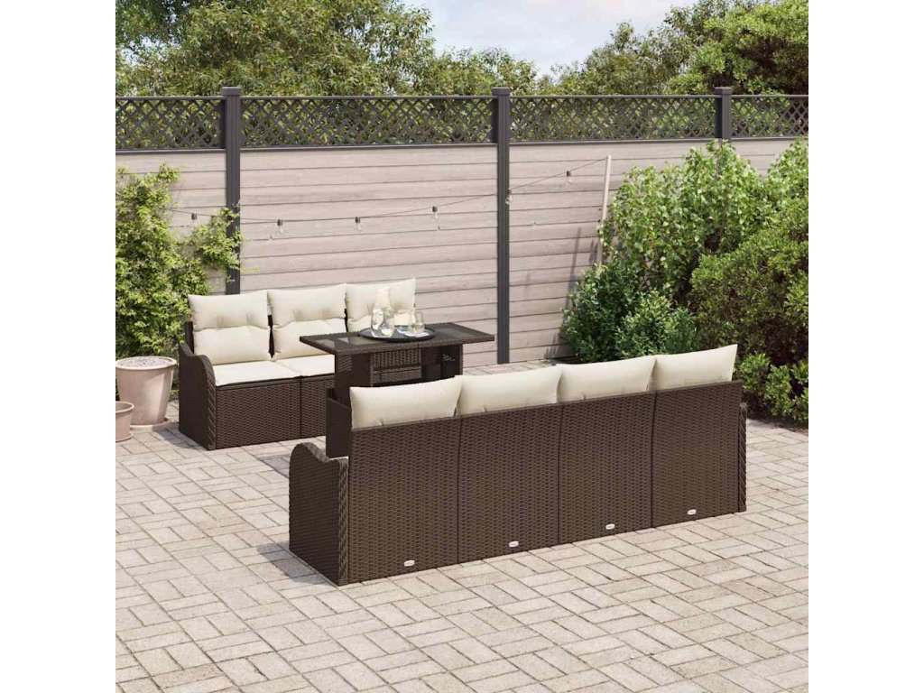 Sada zahradních pohovek s polštářem 8 pcs Hnědá Poly Ratan