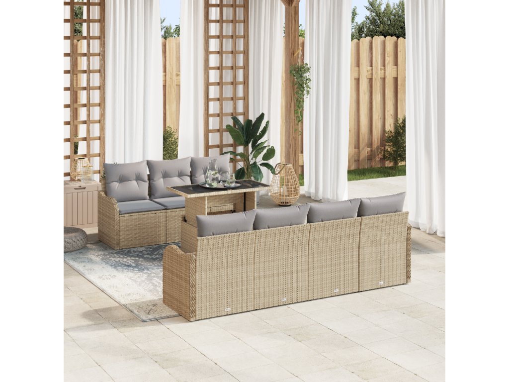 Sada zahradních pohovek s polštářem 8 pcs Béžová Poly ratan