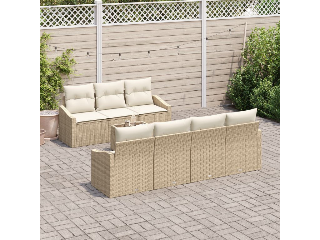 Set pohovek s polštářem 8 pcs Béžová a krémová polyratan