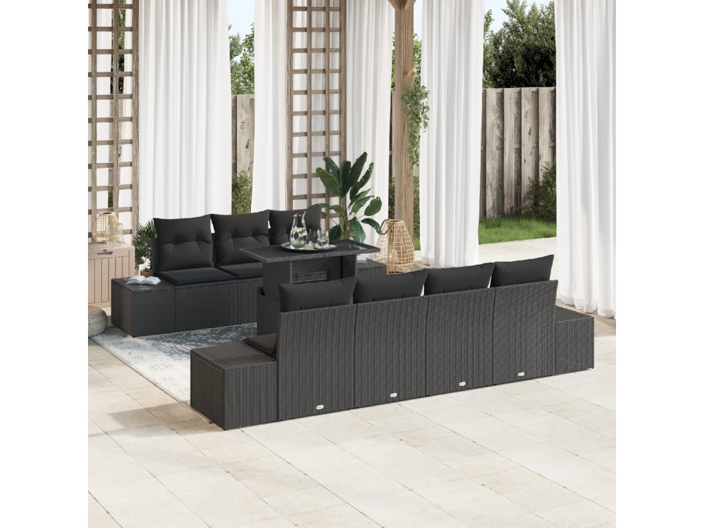 Set pohovek s polštářem 8 pcs Černá polyratan