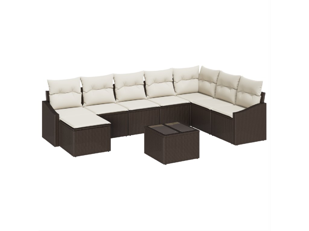 Set pohovek s polštářem 9 pcs Hnědá polyratan