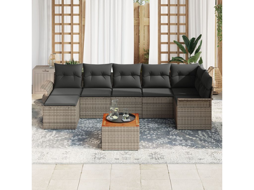Sada zahradních pohovek 8 pcs Šedá Poly ratan