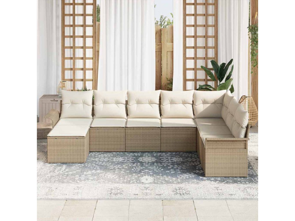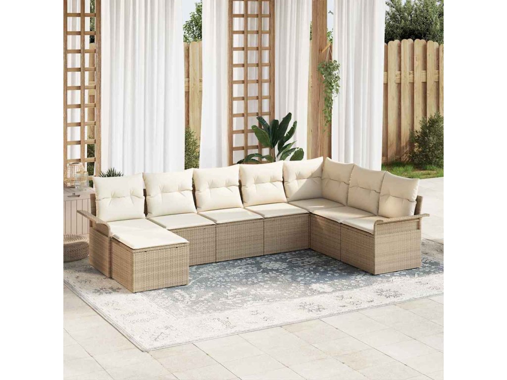 Sada zahradních pohovek s polštářem 8 pcs Béžová Poly ratan