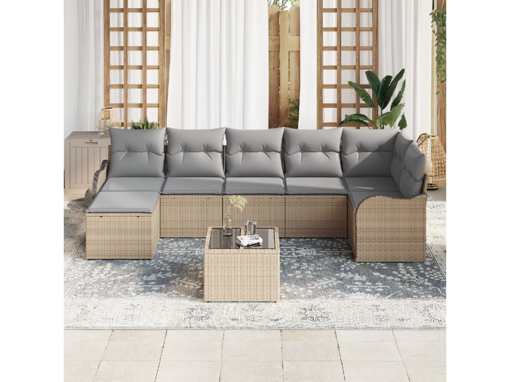 Materiály: Vyrobeno z polyratanu, odolného proti počasí, set slibuje dlouhou životnost. Má pohodlné polyesterové polštáře. Součásti: Obsahuje opěrku a zakřivené opěrky rukou pro oporu a pohodlné sezení. Nožky z práškově lakované oceli dodávají stabilitu. Vlastnosti / Funkce / Design: Navrženo pro venkovní použití, má UV-odolné materiály, které chrání před slunečním poškozením. Modularita umožňuje přizpůsobení různým potřebám. Doporučené použití: Ideální pro zahrady a terasy, tento pohovkový set doplňuje útulné i prostorné akce. Je to osvědčené řešení pro každou společenskou událost. Údržba a péče: Udržujte ho čistý hadříkem. Doporučuje se chránit před špatným počasím. Odnímatelné potahy se snadno čistí a udržují minimální úsilí pro údržbu.- Barva: Béžová