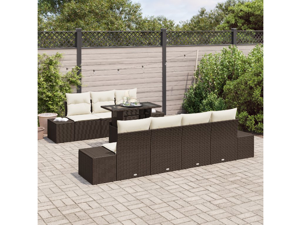 Set pohovek s polštářem 8 pcs Hnědá a krémová polyratan