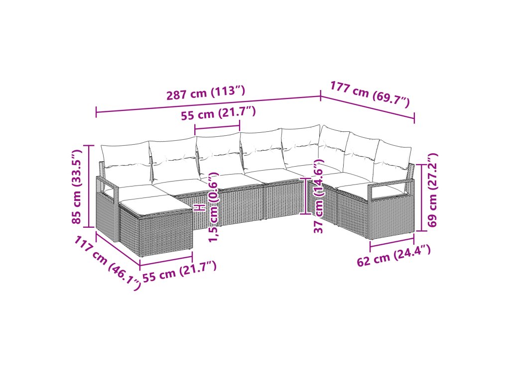 Sada zahradních pohovek 8 pcs Béžová Poly ratan