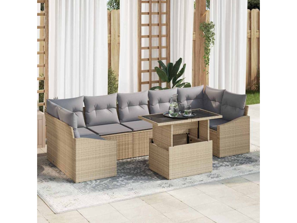 Sada zahradních pohovek s úložištěm 8 pcs Béžová Poly ratan