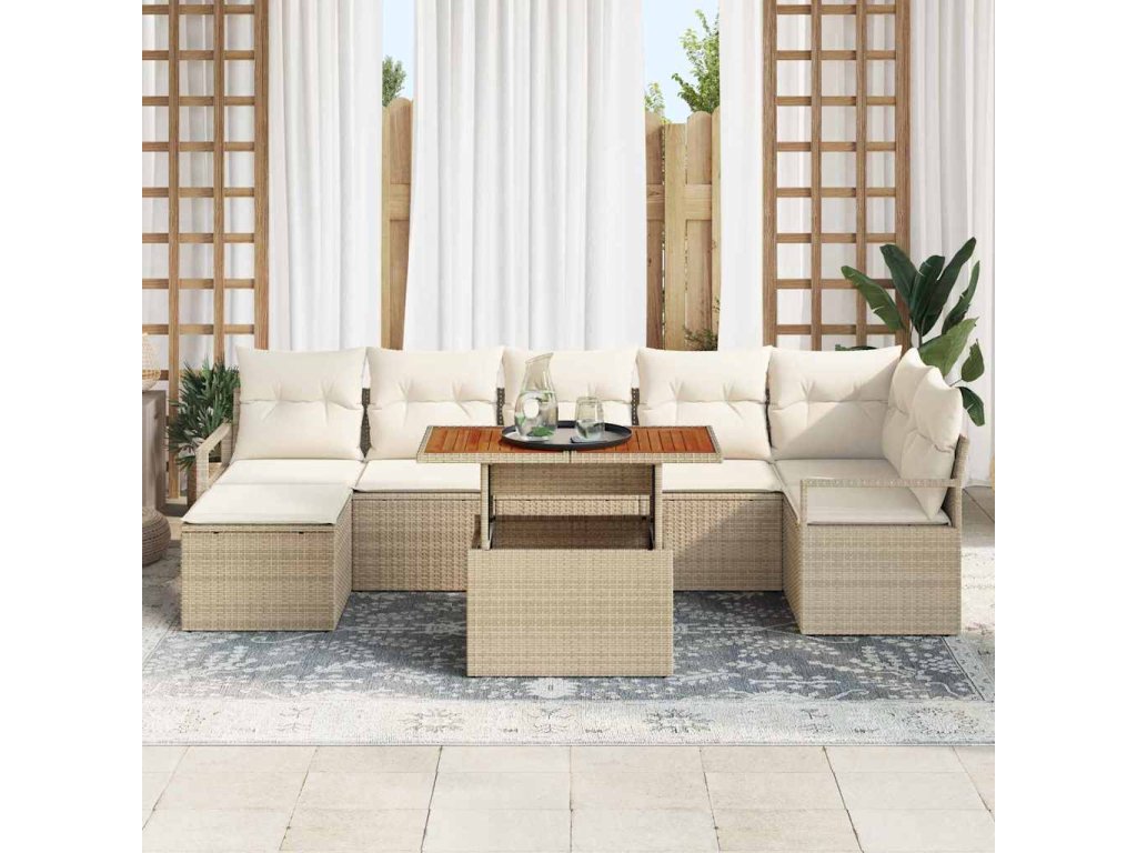 Sada zahradních pohovek s úložištěm 8 pcs Béžová Poly ratan