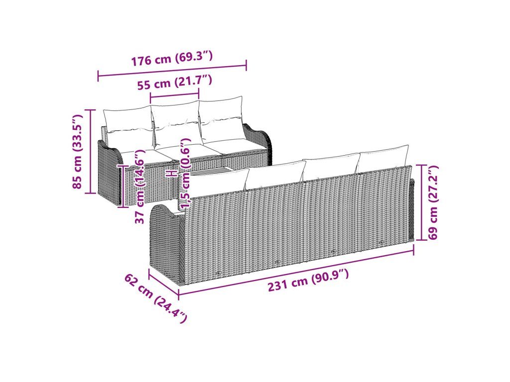 Sada zahradních pohovek 8 pcs Černá Poly ratan