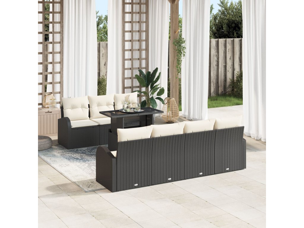 Sada zahradních pohovek s polštářem 8 pcs Černá Poly ratan