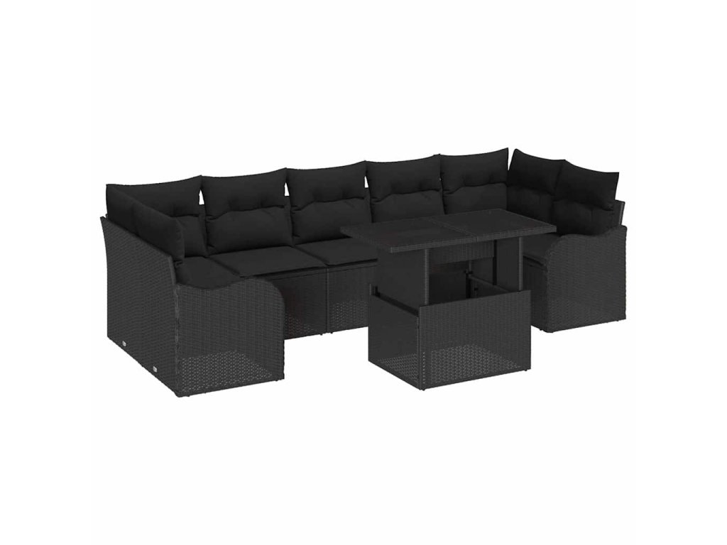 Sada zahradních pohovek s polštářem 8 pcs Černá Poly ratan