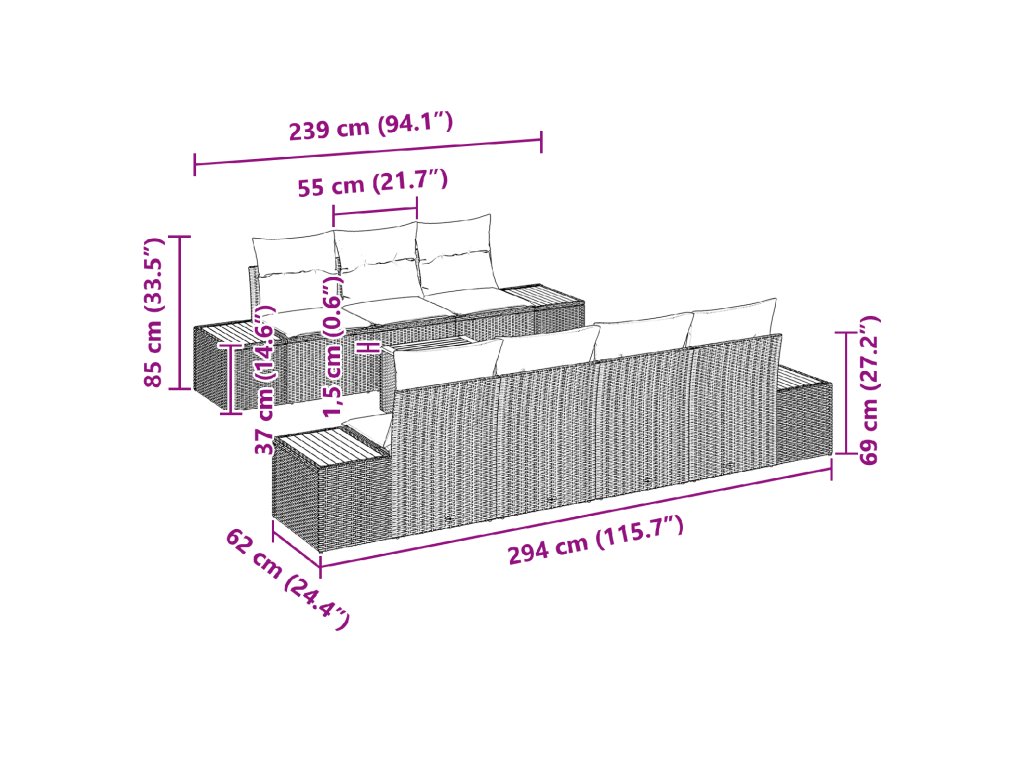 Sada zahradních pohovek s polštářem 8 pcs Černá Poly ratan