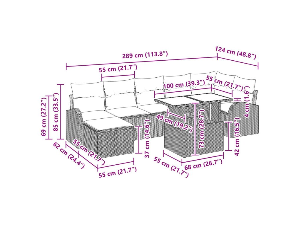 Materiály: Modulární zahradní pohovka je vyrobená z poly ratanu a polyesteru, což zajišťuje trvanlivost a vzhled. Poly ratan je odolný vůči UV záření a vodě. Měkký polyester na polštářích dodává pohodlí, takže sezení je vždy příjemné. Součásti: Tato sada zahrnuje rohový sedák, středové sedáky, pohovky s opěrkami, taburet a stůl. Každý kus doplňuje design a nabízí možnost přizpůsobit se různým situacím. Kombinace těchto prvků obohacuje venkovní relaxaci a je ideální pro zábavu s přáteli. Funkce / design: Modulární koncept umožňuje přeorganizovat sezení podle potřeby. Integrované úložné prostory jsou super pro schování polštářů a udržují vše v pořádku. Je odolná vůči UV záření, což zaručuje její dlouhou životnost a stále skvělý vzhled. Doporučené použití: Perfektní pro zahradu a terasu, funguje jako pohodlné místo k odpočinku nebo místo pro setkávání. Skvělá pro zahradní párty nebo relaxaci v klidu, tato sestava se hodí do každého prostředí. Péče a údržba: Aby si nábytek udržel svůj pěkný vzhled, doporučuje se ho zakrýt, když ho nepoužíváte, a brát polštáře dovnitř při špatném počasí. Minimální péče zajistí jeho atraktivní vzhled po celou sezónu, aby jste si mohli užívat perfektní venkovní kousky.- Barva: Hnědá a krémová