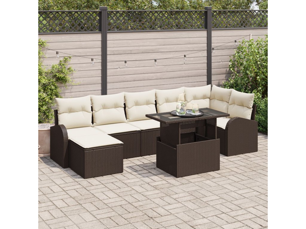 Sada zahradních pohovek s polštářem 8 pcs Hnědá a krémová