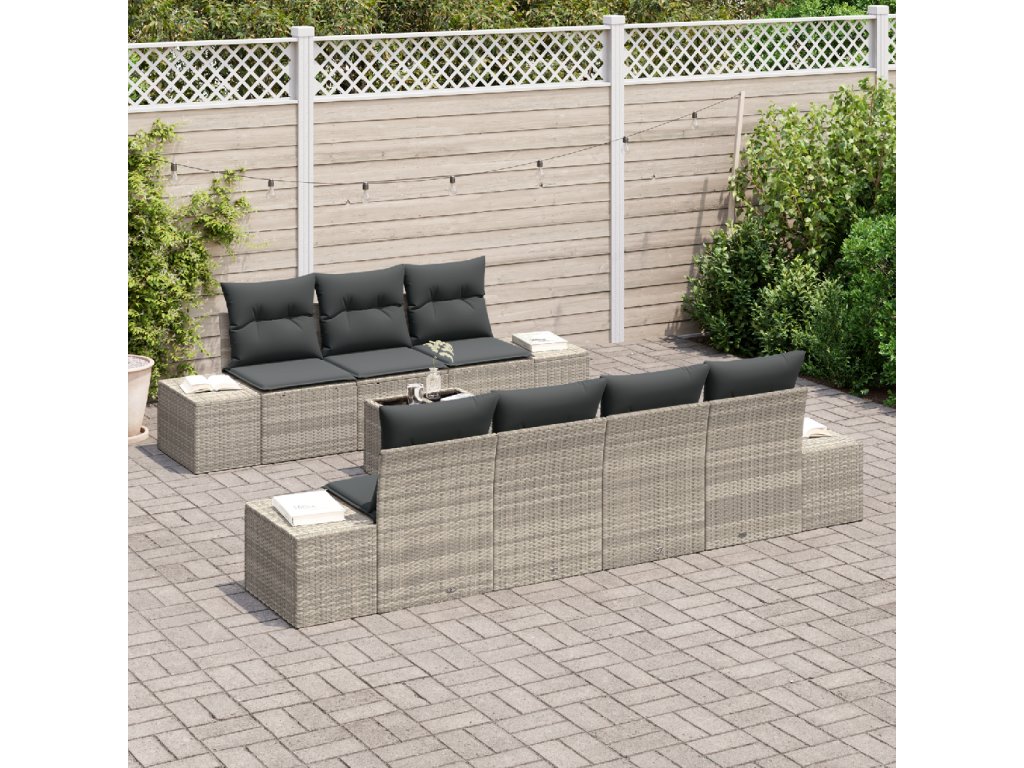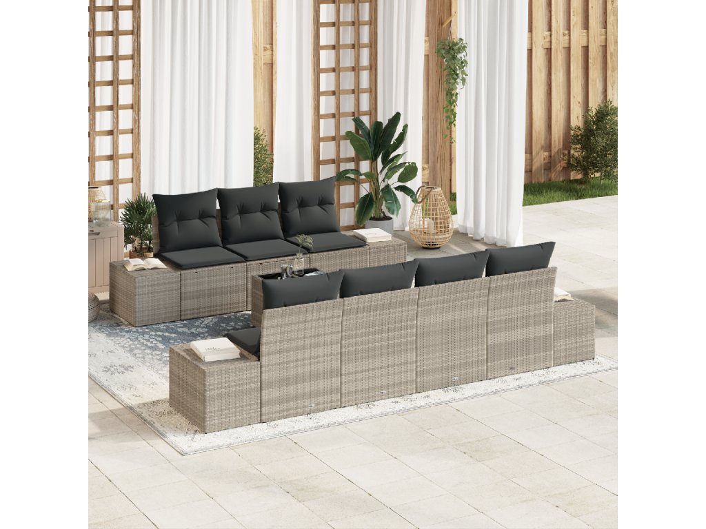 Sada zahradních pohovek s polštářem 8 pcs Světle šedá polyratan