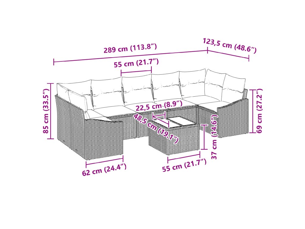 Set pohovek s polštářem Světle šedá 55 x 55 x 37 cm polyratan