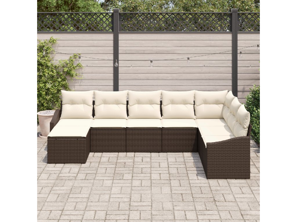 Set pohovek s polštářem 8 pcs Hnědá polyratan
