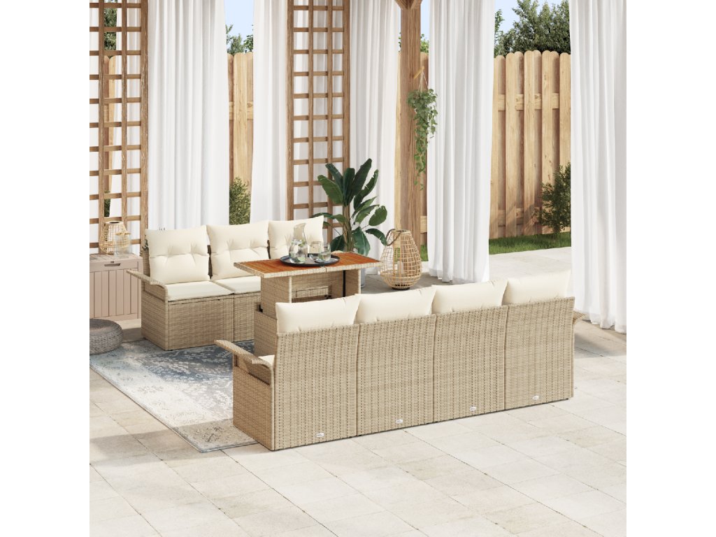 Sada zahradních pohovek s polštářem 8 pcs béžová a krémová