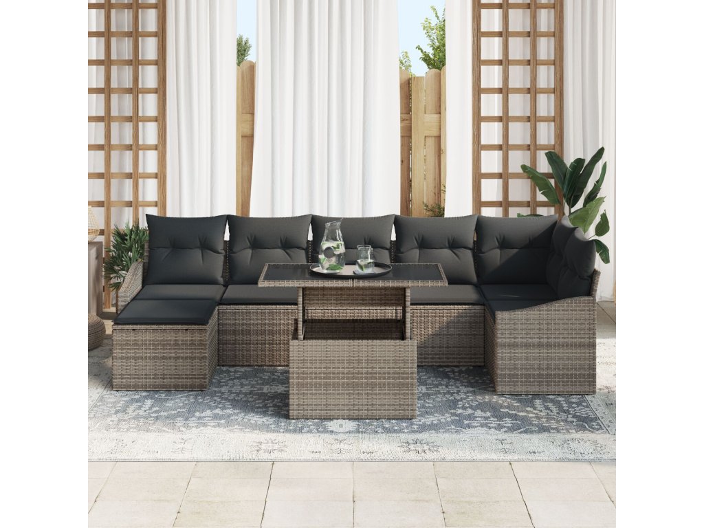 Sada zahradních pohovek s polštářem 8 pcs Šedá polyratan
