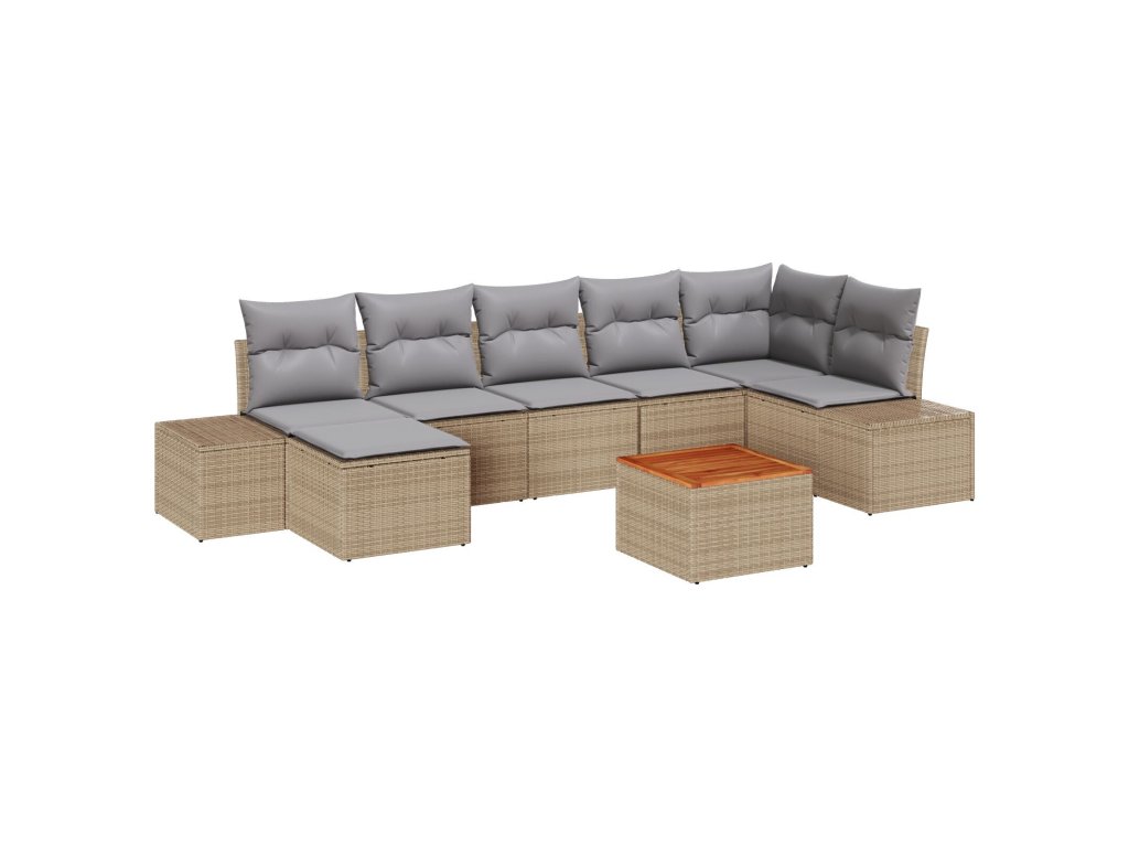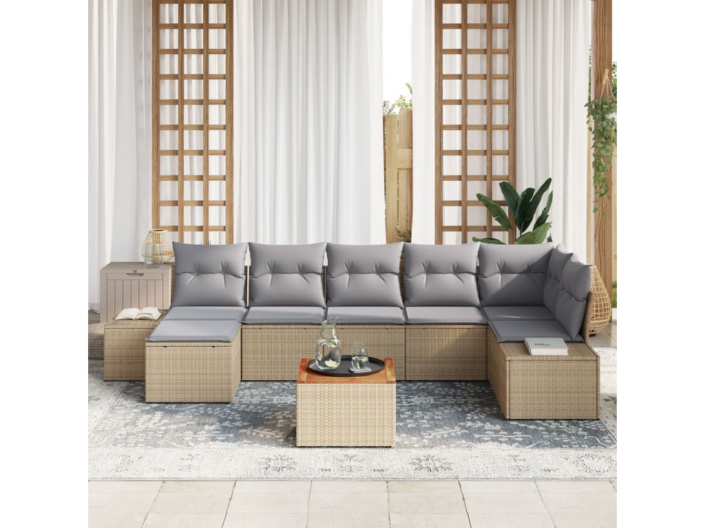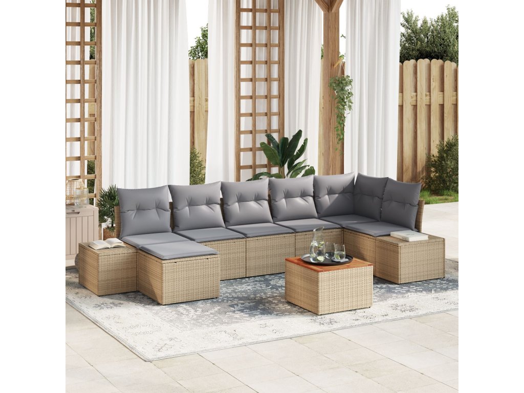 Sada zahradních pohovek s polštářem 8 pcs Béžová Poly ratan