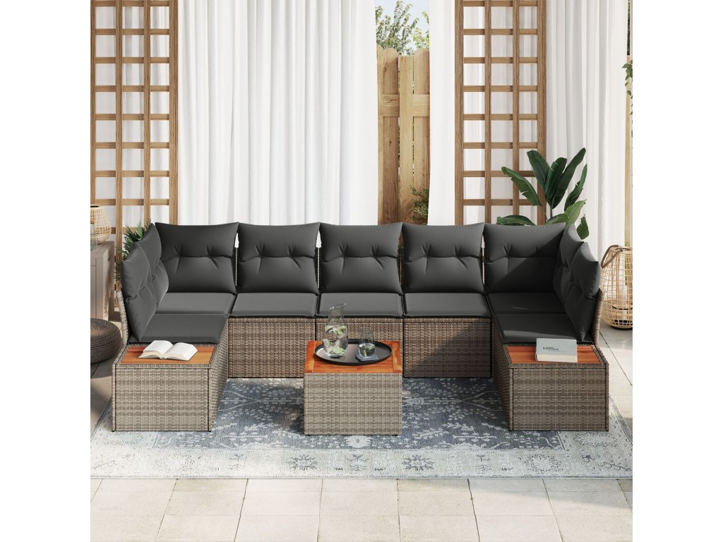 Sada zahradních pohovek s polštářem 8 pcs Šedá Poly ratan
