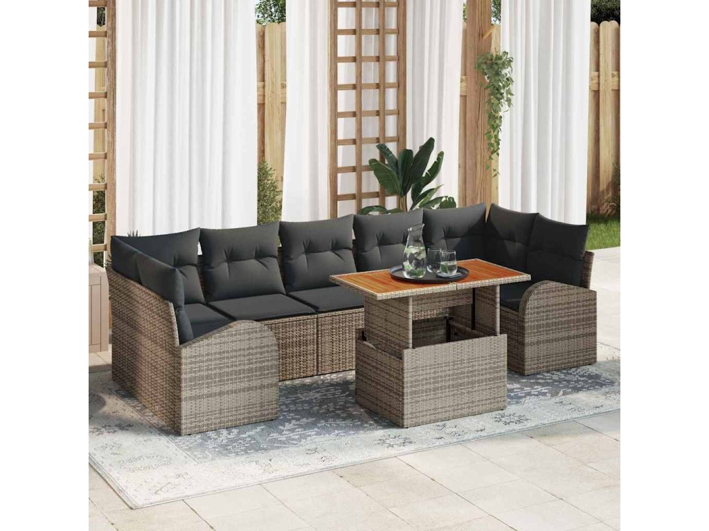Sada zahradních pohovek s úložištěm 8 pcs Šedá Poly ratan