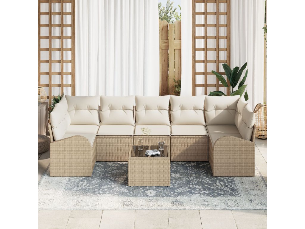 Vysoce kvalitní materiály: Tento zahradní pohovkový set z poly ratanového materiálu vypadá elegantně a je odolný. Je UV-odolný a snáší drsné venkovní podmínky. Robustní nohy z práškově potažené oceli zajišťují stabilitu pro dlouhodobé používání, takže všechno krásně ladí a vy vytvoříte funkční prostor pro venkovní lenošení. Komponenty a design: Set obsahuje dvě rohové sedačky, tři středové sedačky, dvě pohovky s opěrkami a čtvercový stůl s tvrzeným sklem. Komponenty jsou navrženy pro pohodlí a snadné přizpůsobení různým sociálním potřebám. Elegantní poly ratanové opěrky rukou a reprezentativní zadní panely dodávají designu šmrnc. Výjimečné vlastnosti: Lehký set je snadno přenosný, s modulárním designem pro různá uspořádání. Potahy s polyesterovým plněním zaručují pohodlí, zatímco stůl s tvrzeným sklem je silný a snadno se čistí. Univerzální použití: Ideální pro terasy, zahrady a balkony, tento set nabízí možnost relaxace a variabilitu pro každou příležitost. Je skvělý pro letní večírky nebo klidné večery a hodí se jak pro domovy, tak pro pohostinské prostory. Tipy na údržbu: Udržujte set v dobrém stavu otíráním vlhkým hadříkem a zakryjte ho, když není používán. Odnímatelné potahy polštářů můžete prát, což usnadňuje jejich údržbu a zajišťuje, že set bude stále vypadat stylově po celou sezónu.- Barva: Béžová